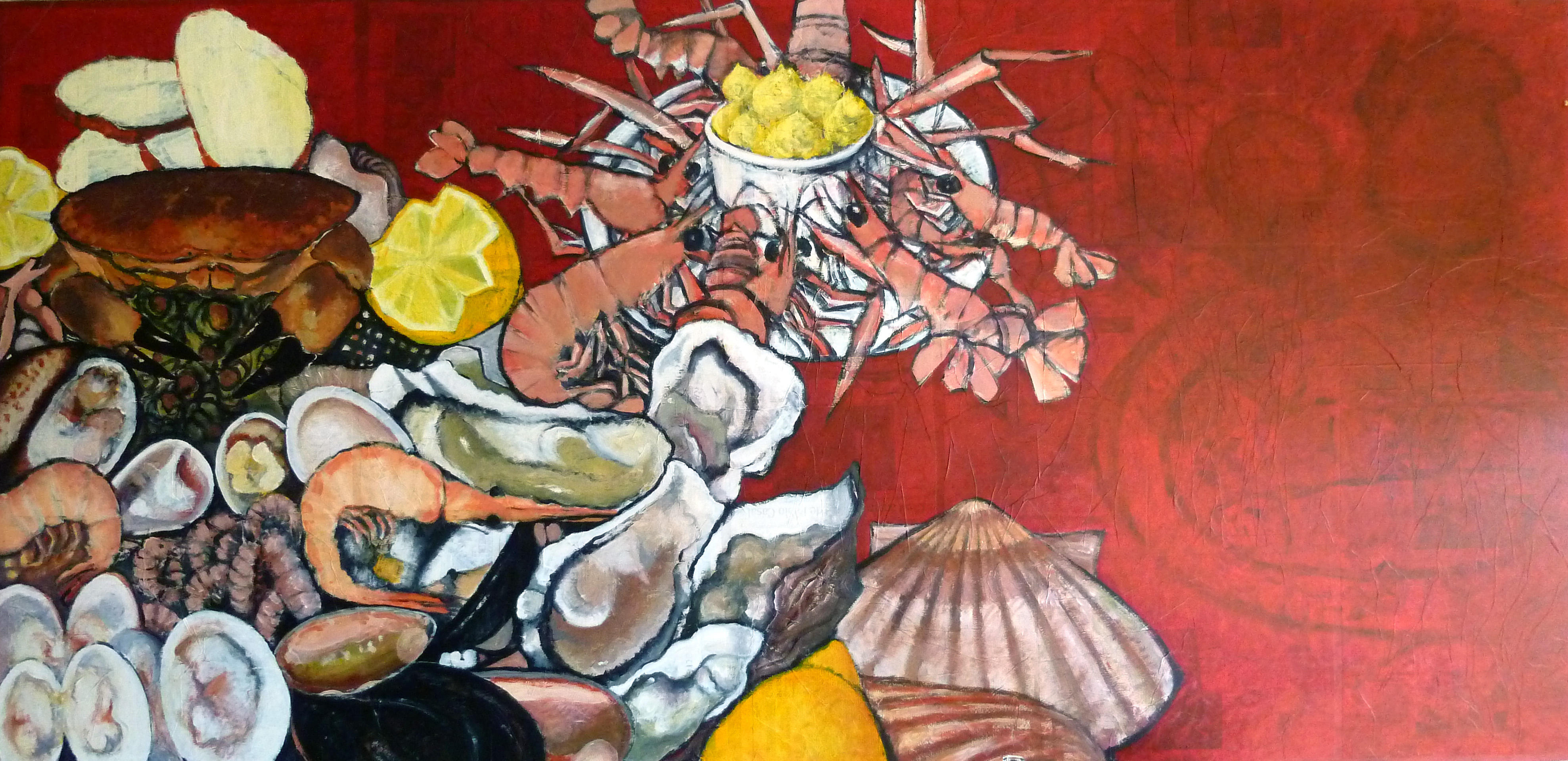 3 d . Le plateau de fruits de mer Acrylique sur panneau – 120 x 250 cm Fond papier journal Partager : Partager sur X(ouvre dans une nouvelle fenêtre) X Partager sur Facebook(ouvre dans une nouvelle fenêtre) Facebook J’aime chargement…