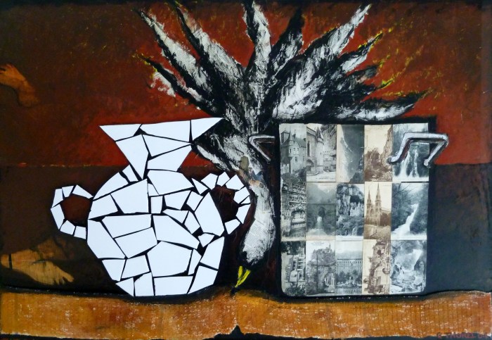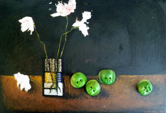 3 h . Natures (pas vraiment) mortes Technique mixte sur panneaux colle – objets divers – peinture – pastel gras Partager : Partager sur X(ouvre dans une nouvelle fenêtre) X Partager sur Facebook(ouvre dans une nouvelle fenêtre) Facebook J’aime chargement…
